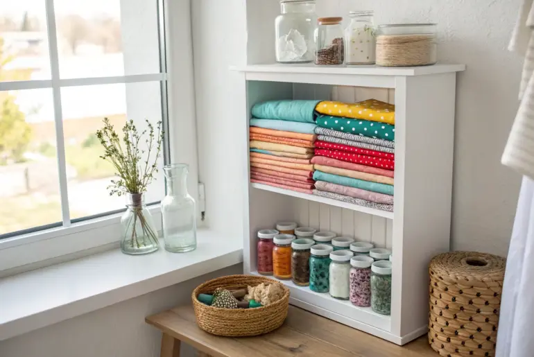 A well-organized sewing room isn’t about having more space—it’s about making every tool and fabric cut easy to see, grab, and put back. I’ve organized sewing corners in tiny apartments and full rooms alike, and the right systems instantly make you feel more creative (and less overwhelmed). Hang Tools on a Pegboard A birch pegboard turns sewing tools into a tidy display—no more missing scissors. I swear by a pegboard wall because my scissors, rotary…