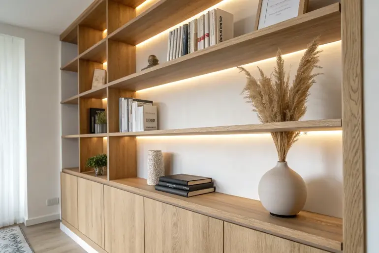 Bookshelves can do so much more than hold books—bookshelf lighting turns them into a cozy little design moment. In my small apartments, the right glow has always made my shelves look more “styled” and way less cluttered, even when they’re doing double-duty as storage. Hide the Cords With a Back-Corner Route Hide messy cords by routing them down the back corner for a clean, cozy bookshelf glow. Even the prettiest bookshelf lighting looks messy with…