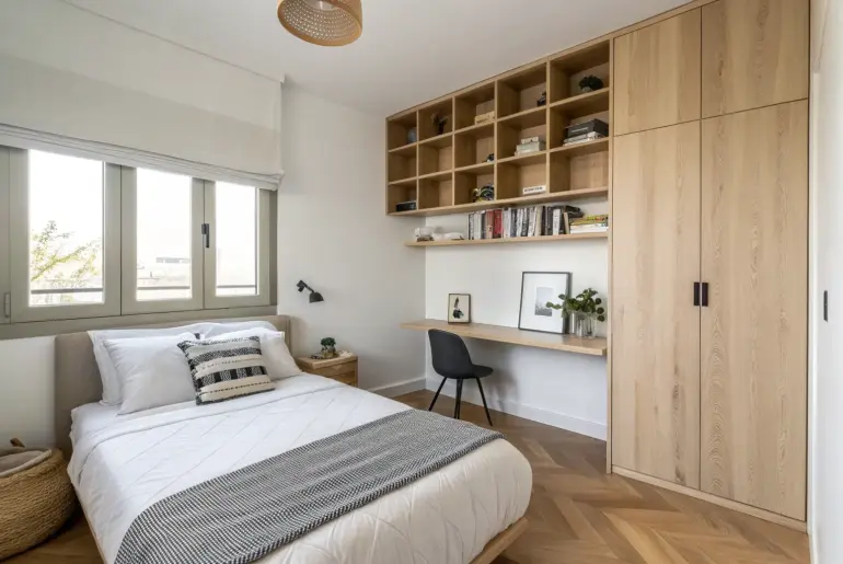 Bedroom shelves are one of my favorite small-space upgrades because they add storage without stealing precious floor space. In my tiny apartments, the right shelving always made the room feel more curated, calmer, and way easier to keep tidy. Shelf Bridge Over a Bed Nook A floating shelf bridge over the bed nook adds custom storage without crowding the room. I once helped a client build a simple over-bed shelf bridge that connected two side…