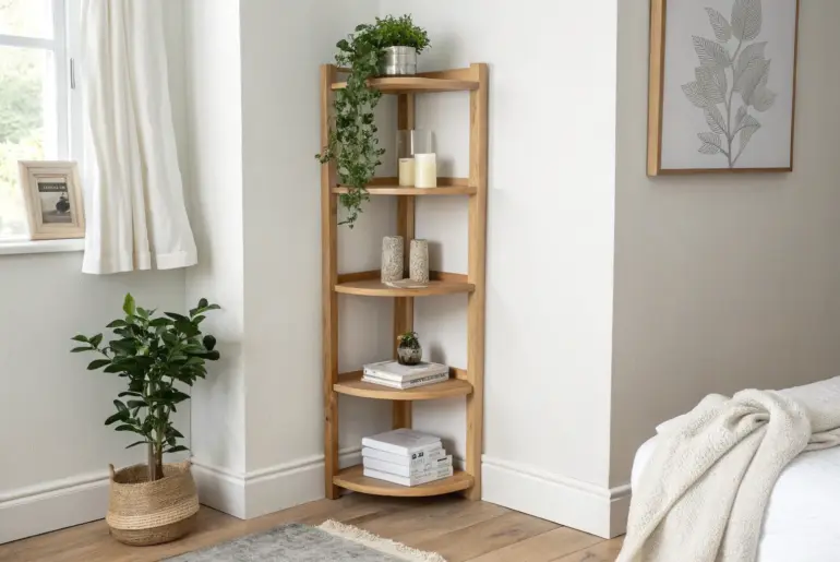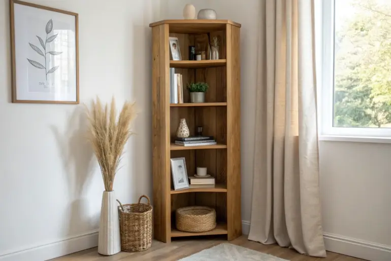 A good corner bookshelf turns that awkward “nothing fits here” spot into your favorite little feature wall. Corner Bookshelf With a Tiny Desk Turn a dead corner into a calm work nook with a corner bookshelf + tiny desk combo. I once turned a dead corner into a work zone by pairing a small surface with a corner bookshelf above it. Keeping office supplies on the lower shelves and books up top helped my brain…