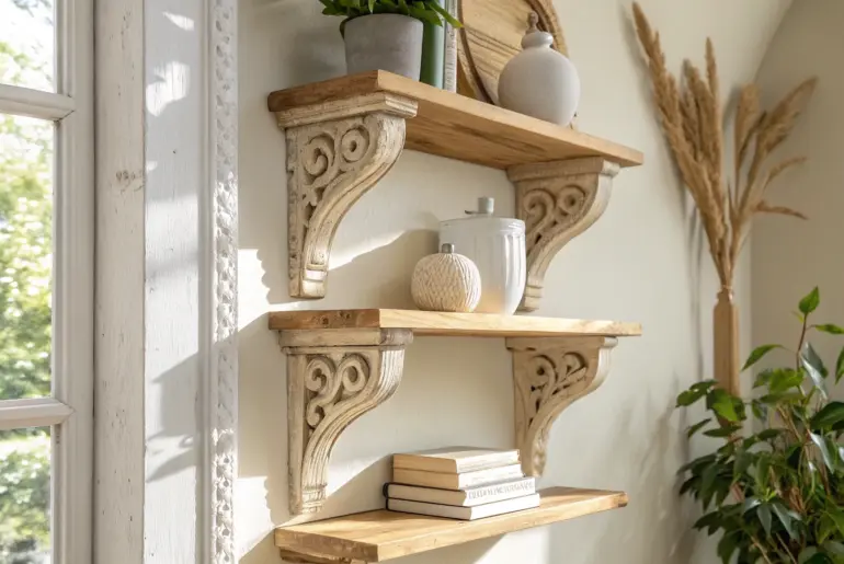 Corbel shelves are my go-to trick for adding instant character to blank walls without eating up precious floor space. In small apartments, I love how corbel brackets make even a simple ledge feel intentional and styled. Micro Shelf Above Doorways A micro corbel shelf above the doorway adds height and style—keep it simple with one sprig. In one studio, I added a slim corbel shelf above a doorway for lightweight decor, and it made the…