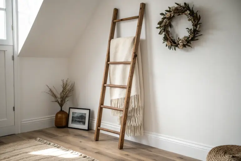 A decorative ladder is one of my favorite small-space tricks because it adds vertical style without eating up precious floor space. I’ve used ladders in tiny apartments for years, and they always end up being that “why didn’t I do this sooner?” piece that’s both cute and useful. Cozy Lighted Ladder Corner A cozy ladder corner wrapped in warm string lights—instant glow with zero floor space. I love wrapping a decorative ladder with soft string…