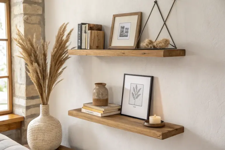 When you place floating shelves in the right spot, they do so much more than hold stuff—they make a small room feel intentional and styled. Stacked Vertically to Use Wall Height Stack floating shelves vertically to lift the room—tidy spacing, warm wood, airy styling. When a room feels short, I stack floating shelves vertically to pull the eye upward—this trick saved my studio from feeling boxy. I keep the spacing consistent so it reads tidy,…