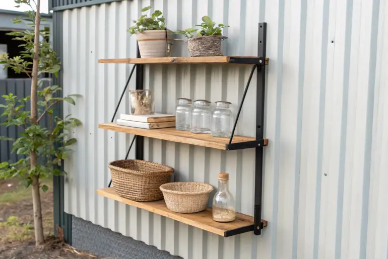 A metal shed can go from “where stuff goes to disappear” to ridiculously organized with the right shelving plan. Heavy-Duty Shelves for Bulk Items Heavy-duty shed shelving that keeps bulk items stable, accessible, and beautifully organized. In every metal shed I set up, I reserve one section for heavy-duty shelving so bags, paint, and big bins don’t end up in wobbly stacks on the floor. I learned the hard way to keep the heaviest stuff…