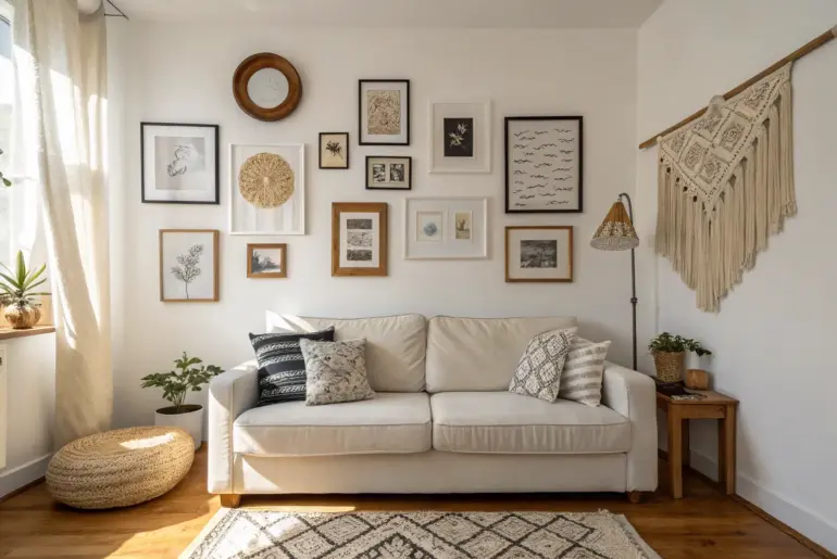 Apartment walls can feel like the last blank frontier, especially when you’re trying to keep things renter-friendly and low-commitment. Floating Shelves as Wall Decor Stacked floating shelves that double as wall art—minimal, airy, and perfect for tiny spaces. In tiny apartments, I treat floating shelves like wall art plus storage, stacking them vertically to pull the eye up. I’ve styled mine with a mix of books, a small framed print, and one sculptural object so…
