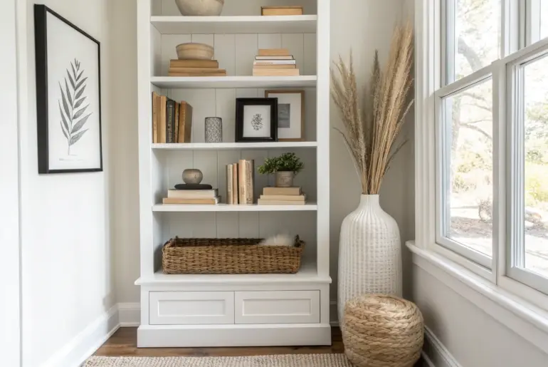 Built-in shelves can look custom and expensive, but the real magic is how you style them without making them feel crowded. Group Decor in Threes Style built-ins with a trio: tall vase, art, and woven texture for effortless shelf movement. When I style built-in shelves for clients, I default to odd-number groupings because they feel relaxed but still styled. A few choices to try: Ceramic or Terracotta Vase: Anchor your shelf vignette with a textured…