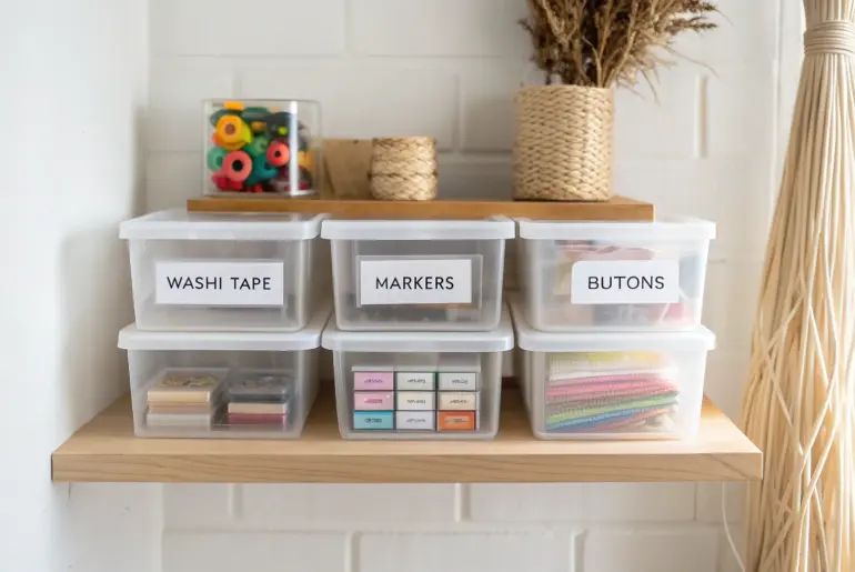 Craft supplies have a sneaky way of multiplying overnight, especially when you’re creating in a small space. Sort by Craft Category First Sort by craft category: one caddy for paper, paint, fabric & beads—no more treasure hunts. In my 450 sq ft apartment, I got my sanity back once I grouped craft supplies by big categories (paper, paint, fabric, beads) instead of hyper-specific little bins. I keep each category together so I’m not “treasure hunting”…
