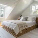 In the attic bedrooms I’ve worked on, a low-profile bed under the slope instantly makes the room feel intentional instead of awkward. You’ll get more headroom where you need it, and that cozy “cave” feeling right where you want it—at bedtime.