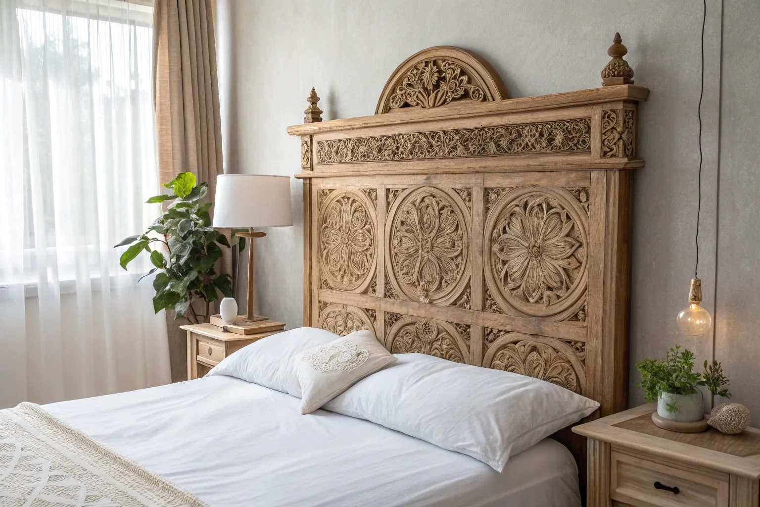 Why stick to rectangles? I carved a headboard with wavy edges that mimic ocean waves, adding a touch of whimsy to my bedroom.