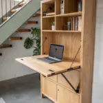 In small spaces, I always go up with vertical storage like a slim shelf, because it frees the desk while still keeping essentials close. I style it with a neat row of notebooks plus one decorative piece so it doesn’t feel purely utilitarian.