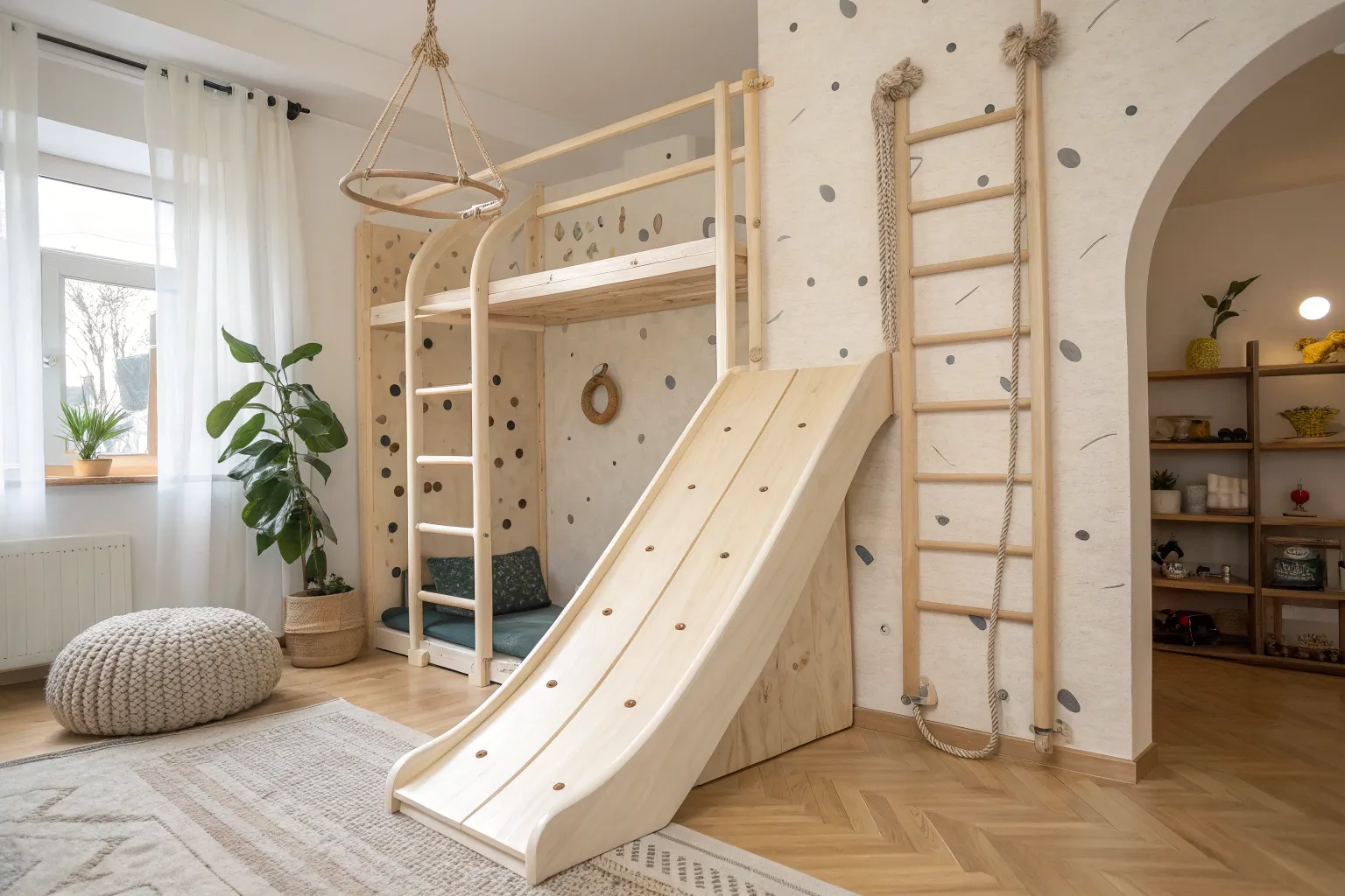 Slides aren’t just for the park—add a compact slide to your indoor playground for instant fun. I once added a small slide from the loft bed, creating a thrilling exit that kids adore.
