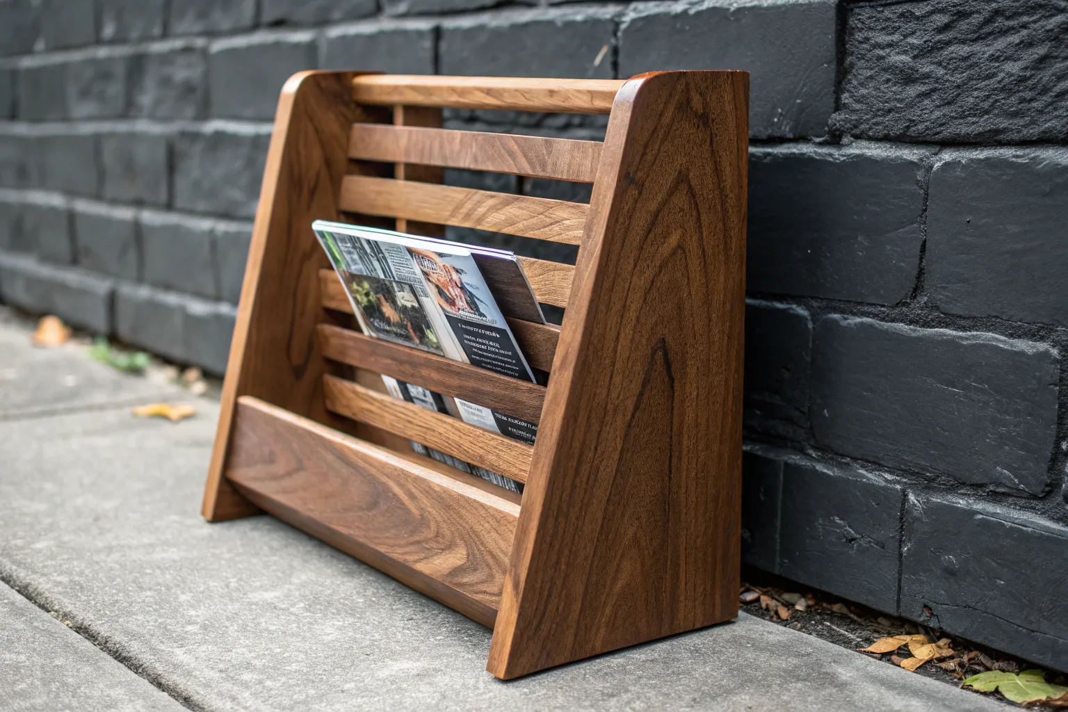 Elevate your space with a handcrafted wooden slat magazine rack – where function meets style.