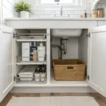 My most “wow” DIY was a U-shaped sliding drawer that glides out while the plumbing sits in the cutout, so I’m not sacrificing the best real estate in the cabinet. It took me a careful cardboard template first, but the payoff was a custom-looking under-sink setup that actually works.