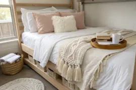In lofted setups, I always add a bedside caddy so your phone, charger, glasses, and water bottle aren’t living on the mattress. I’ve used one myself and it’s weirdly life-changing not climbing down for basics at 1 a.m.