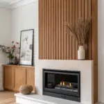 I mounted a wall-mounted electric fireplace on a wood-slat panel and it instantly pulled the eye upward, which is gold in low-ceiling apartments. I kept the slats running floor-to-ceiling so the fireplace felt like part of the architecture.