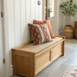 I love a small shoe bench in the entry hallway because it gives you a place to sit without eating up floor space. In my apartment, choosing one with hidden storage underneath was the difference between tidy and chaos.