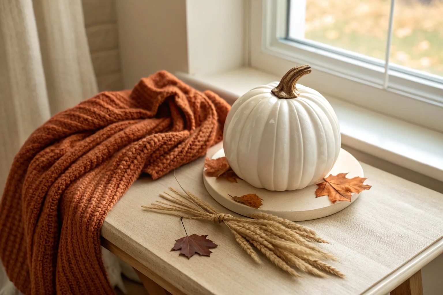 • Faux White Pumpkins: Add a subtle, seasonal touch to your vignette with realistic artificial pumpkins that can be reused annually.