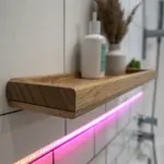 • Light Wood Floating Shelf: Install a sturdy wooden shelf to create the perfect base for your bathroom greenery and decor essentials.