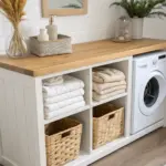 - Woven Seagrass Storage Basket: Keep laundry organized with a natural, textured basket that perfectly complements the airy aesthetic of louvered doors.