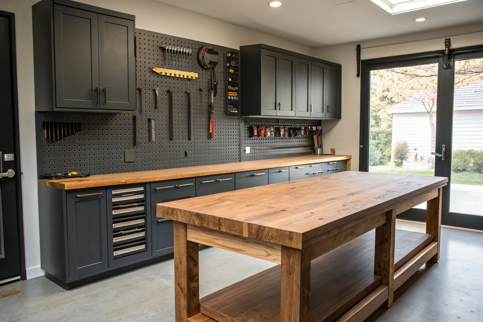 Consider a mobile workbench if you need flexibility in your garage. I love being able to roll my workbench to the best spot for natural light or extra space when needed.