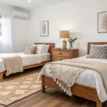 - Simple Wood Twin Bed Frame: Establish a cohesive foundation with identical, minimalist wooden bed frames that create a calm, unified look.