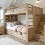 - Blush Pink Throw Pillows: Add a soft pop of color and extra comfort to each bunk with textured pink pillows.