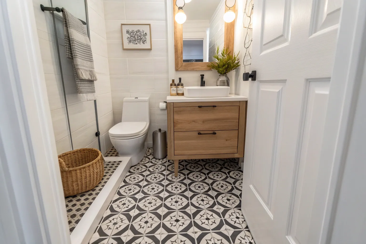 I’ve done a bold patterned floor tile in a half bathroom and kept everything else quiet, and it looked like the room had a personality upgrade overnight. My rule from experience: if the floor is loud, the walls get to whisper.