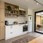 • Floating Wood Shelves: Install warm wood floating shelves to provide sturdy storage and a natural contrast against tiled backsplashes.