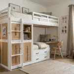 A split-level loft is one of my favorite layouts because you can sleep in one spot and use the lower loft as storage or a reading nook. I’ve styled this for clients who wanted separation without losing the open, simple feel.