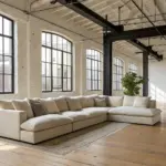 Low-profile, clean-lined sofa makes a small living room feel taller—ideal for men’s apartments.