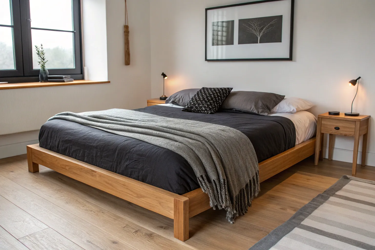 - Textured Black or Charcoal Throw Blanket: Add depth to your bed by layering a dark, textured throw over crisp white sheets for instant contrast.