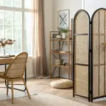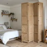 • Natural Jute Area Rug: Ground your room divider setup with a textured natural fiber rug that complements the woven cane look.