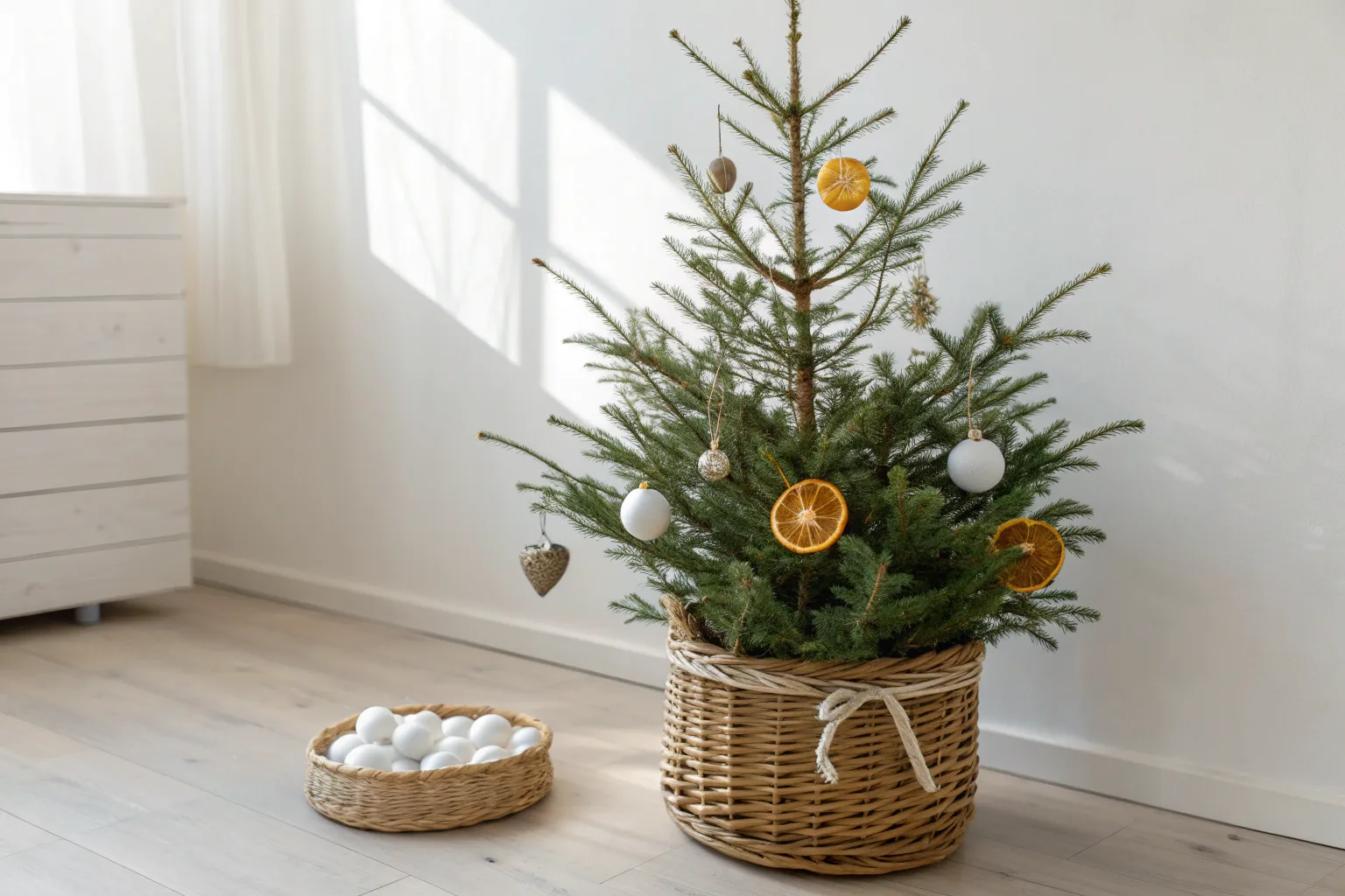 - Small Live Potted Christmas Tree: Start with a fresh, miniature tabletop spruce or pine to create the perfect foundation for minimalist decorating.