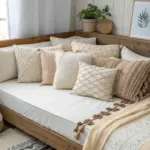 I’ve skipped a headboard entirely by stacking big Euro pillows and a couple of long lumbar pillows against the wall, and it’s way comfier for reading in bed. This is my go-to when I want a soft, cozy no bed frame look fast.