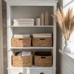 - Woven Storage Baskets: Corral loose toiletries and towels in these textured baskets to keep bathroom essentials organized and accessible.