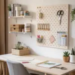 I swear by a pegboard wall because my scissors, rotary cutter, and rulers stop disappearing the moment they have a “home.” I arrange mine like a little tool display, which makes cleanup feel more like styling than chores.