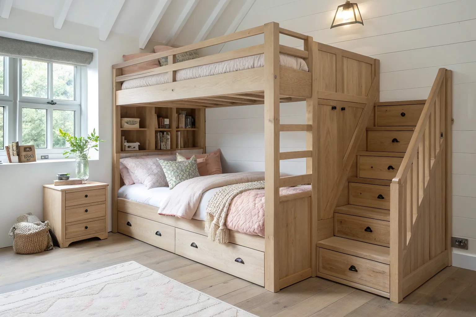 Whenever I’m working with a truly tight shared bedroom, bunk beds are my first pick because they instantly give you back precious floor space. I’ve seen sibling rooms go from “no place to stand” to “room for a rug and toys” just by stacking the sleep zones.