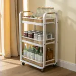 - White Metal Storage Caddy: Keep essentials accessible with this sleek, rust-resistant metal rack designed to fit snugly into tight corners.