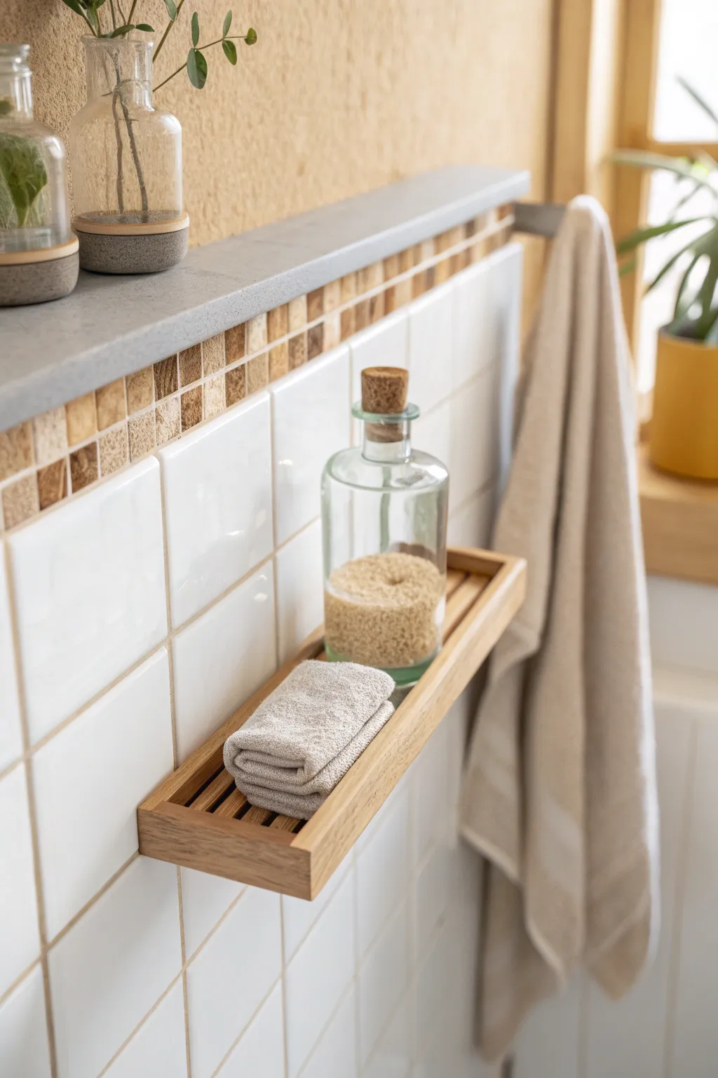 - Wooden Corner Shower Stand: Transform your shower corner with water-resistant wood shelving that offers stability and a natural spa-like aesthetic.