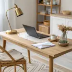 • Mid-Century Modern Writing Desk: Choose a desk with clean lines and tapered wooden legs to complement rustic beams without overwhelming the space.