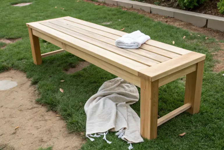 • Decorative Cotton Throw Pillow: Add instant comfort and a touch of softness to your wooden seating with a simple, neutral accent pillow.