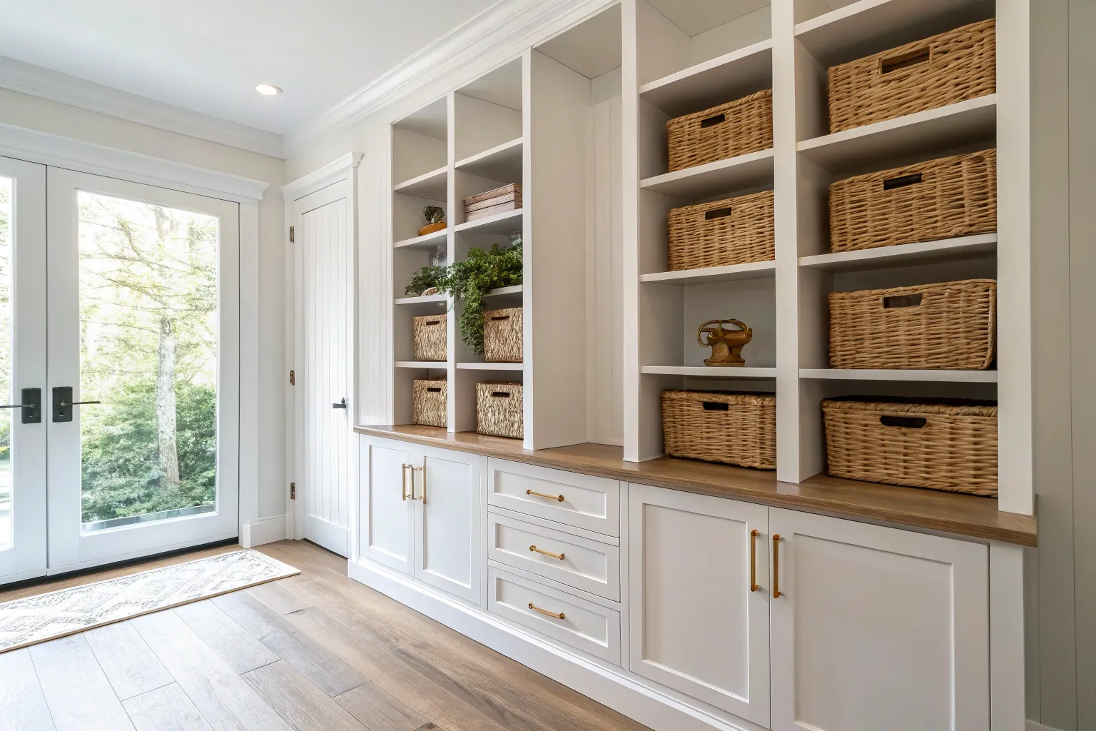 - Woven Storage Baskets: Organize shoes and accessories neatly in these natural bins that add texture and style to your open shelving.