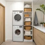 - Wall-Mounted Cabinet Storage: Maximize your vertical space by installing cabinets above your appliances to keep detergents and supplies hidden away.