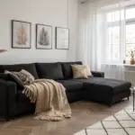 A slim oak reception desk as a room divider—creates an instant entry zone without walls.