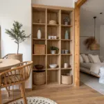 - Decorative Woven Storage Baskets: Keep clutter hidden on lower shelves while adding texture to your room divider with these natural baskets.