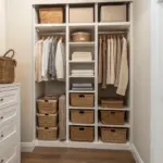 - Woven Storage Baskets: Use sturdy woven baskets to neatly contain folded tablecloths and add a natural texture to your closet shelves.